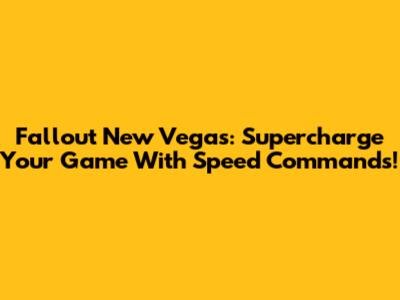 Fallout New Vegas: Supercharge Your Game With Speed Commands!