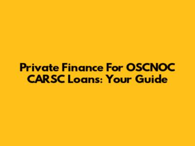 Private Finance For OSCNOC CARSC Loans: Your Guide
