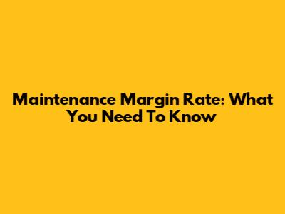 Maintenance Margin Rate: What You Need To Know