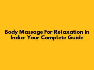 Body Massage For Relaxation In India: Your Complete Guide