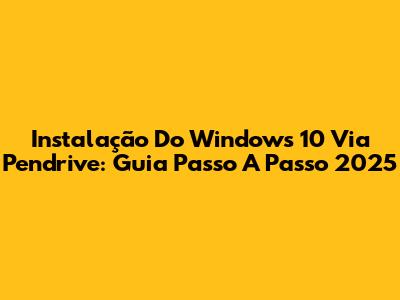 Instalação Do Windows 10 Via Pendrive: Guia Passo A Passo 2025