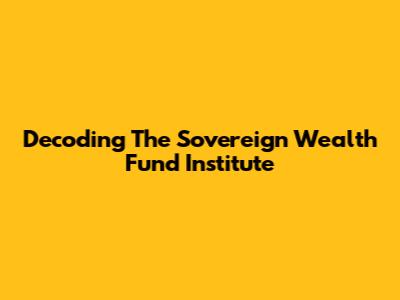 Decoding The Sovereign Wealth Fund Institute