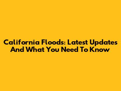 California Floods: Latest Updates And What You Need To Know