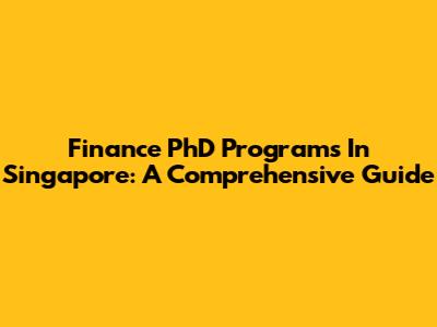 Finance PhD Programs In Singapore: A Comprehensive Guide