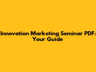 Innovation Marketing Seminar PDF: Your Guide