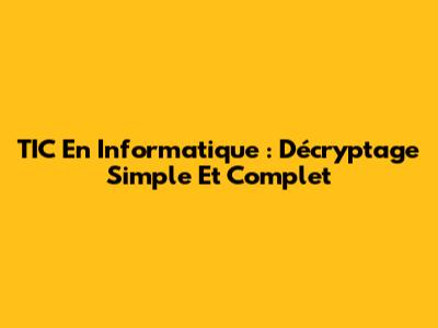 TIC En Informatique : Décryptage Simple Et Complet