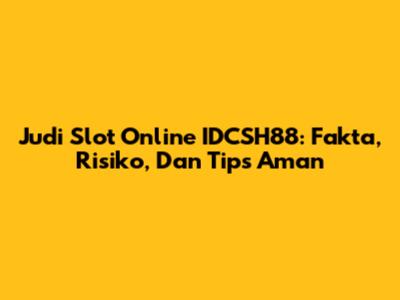 Judi Slot Online IDCSH88: Fakta, Risiko, Dan Tips Aman