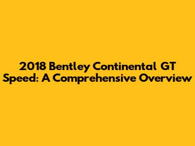 2018 Bentley Continental GT Speed: A Comprehensive Overview
