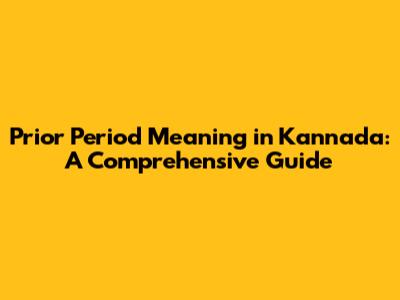 What Does "Prior Period" Mean? - The Kannada Translation and Basics