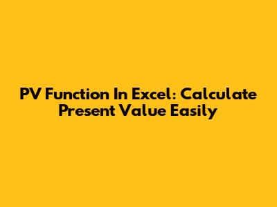 PV Function In Excel: Calculate Present Value Easily