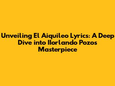 Hey music lovers! Ever found yourself completely captivated by a song? One that just gets under your skin and makes you want to listen again and again? Well, today, we're diving deep into one such track: 'El Aiquileo' by the incredibly talented IIorlando Pozo. This song is more than just a catchy tune; it's a journey, a story, and a testament to the power of music. We're going to explore the lyrics, the meaning, and everything that makes 'El Aiquileo' such a special piece. So, grab your headphones, get comfy, and let's get started. We'll break down the lyrics, uncovering the artistry behind IIorlando Pozo's creation. You know, sometimes you just stumble upon a song, and it sticks with you. That's exactly what happened with 'El Aiquileo' for many of us. This song is a complete package. The melody, the emotion, and especially the lyrics, work together to create an amazing experience. This exploration isn't just about reading words; it's about understanding the heart and soul IIorlando Pozo poured into this song. This isn't just about the words; it's about understanding the art, the emotion, and the story IIorlando Pozo tells through his music. If you're a fan already, awesome! If you're new to 'El Aiquileo,' welcome aboard! Prepare to be amazed.