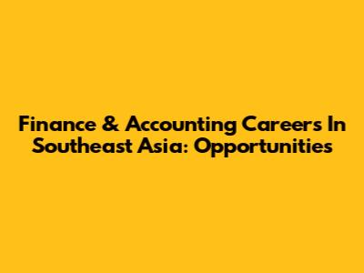 Finance & Accounting Careers In Southeast Asia: Opportunities
