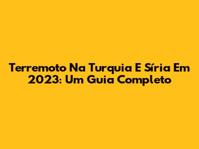 Terremoto Na Turquia E Síria Em 2023: Um Guia Completo